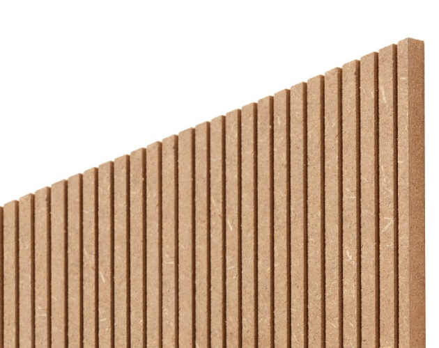 MDF pruža nove mogućnosti pri oblikovanju i razvoju novih ideja i rješenja. Bilo da je lakiran, furniran ili lameliran laminatom, ovaj proizvod omogućava brzu i jednostavnu izradu elegantnih zakrivljenih površina.Precizna izrada utora i točne dubine omogućuju savršeno oblikovanje za radijuse zakrivljenosti > 150 mm. Proizvod je dostupan u debljinama od 8 i 10 mm s vertikalnim utorima.